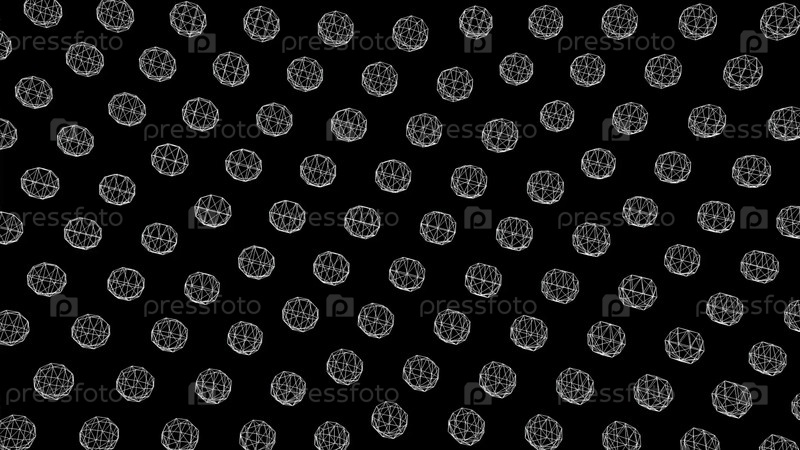Абстрактные белые треугольные формы на черном фоне. Анимация. Поворачивающиеся трехмерные прозрачные додекаэдры. Фон вращающихся кругов треугольников
