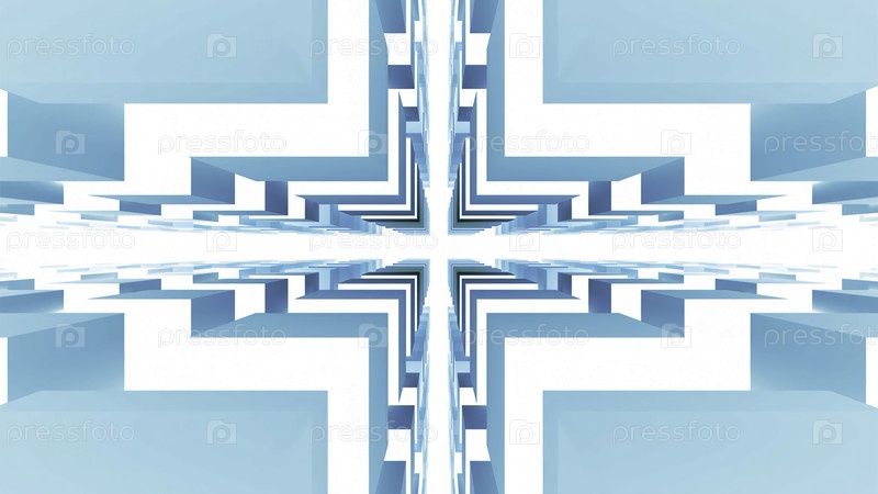 Движение в поперечном геометрическом туннеле.Движение.Геометрическая анимация с движением между кубическими столбами.Туннель с пересечением креста из кубических стен