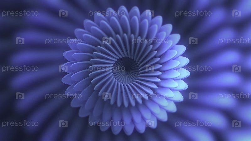 Синяя красивая оптическая иллюзия.Движение.Абстрактный фон в форме вращающейся спирали, похожей на цветок с лучами в постоянном преобразовании