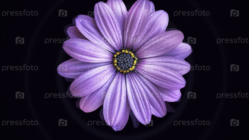 Большой бутон красивого реалистичного цветка плавает на черном фоне, напоминающем воду