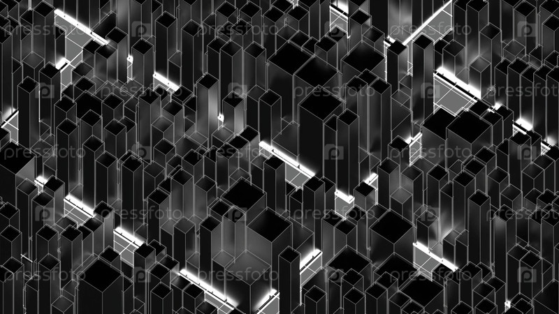 Планировка города со многими зданиями.Дизайн.Летание над абстрактным городом с множеством улиц и небоскребов