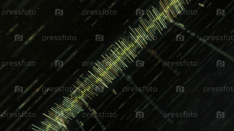 Абстрактный фон с музыкальным треком и цифрами. анимация. абстрактные движения эквалайзера цвета с числами на черном фоне. матрица компьютерного эквалайзера