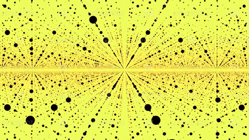 Летание внутри абстрактного пространства с рядами летающих точек. Анимация. Бесконечное количество левитирующих сфер