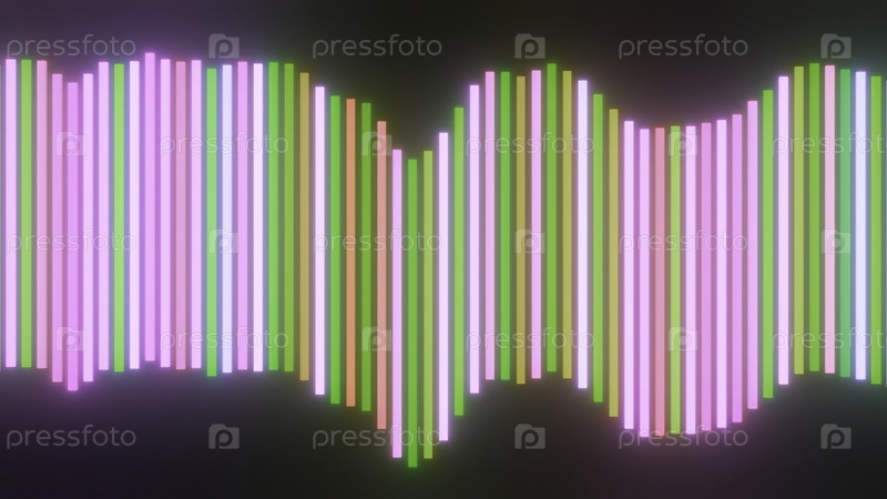 Полоса звукового спектра цветных линий. Дизайн. Цветовая линия эквалайзера с полосами на черном фоне. Красивый эквалайзер, движущийся с линиями