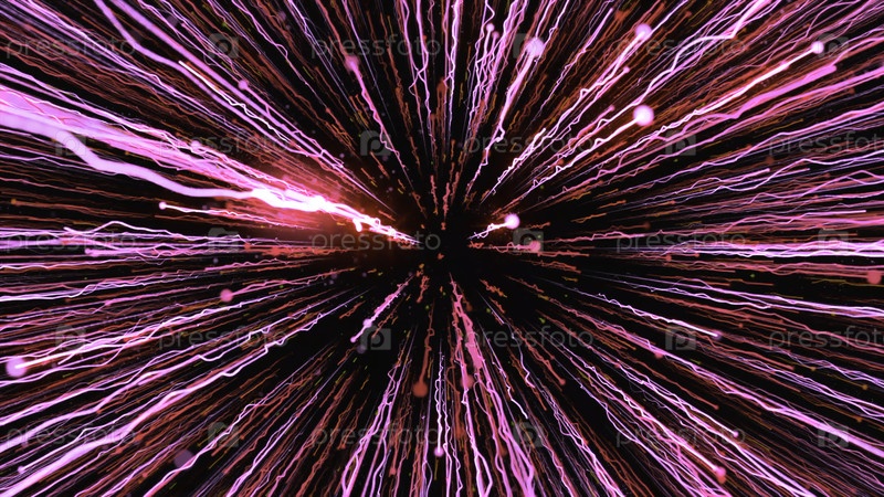 Двигающиеся яркие звезды со светящимися лучами на черном фоне.Движение.Движение в ярком потоке с энергетическими линиями.Гиперскок во внешнем пространстве