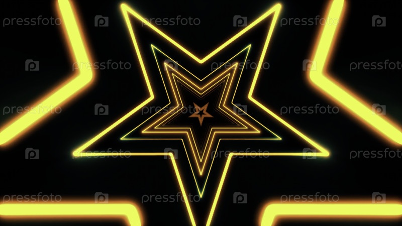 Светящиеся желтые оранжевые неонные звезды создают абстрактный туннель на темном фоне