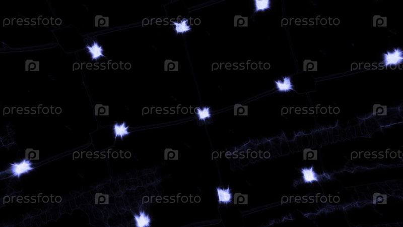 Черный фон с освещенными огнями. Движение. Маленькие горящие звезды в анимации, которые медленно вращаются. Высокое качество 4k кадры