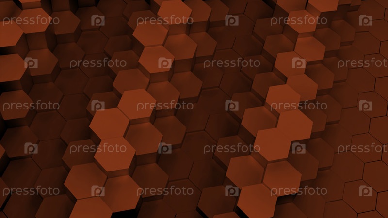 Абстрактная шестиугольная мозаика с красными плитками. Дизайн. Красочное волновое движение частиц мозаики