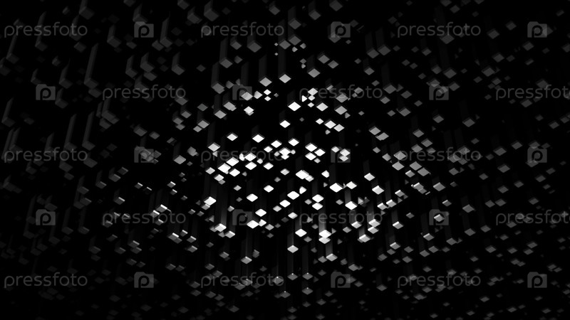 Абстрактные движущиеся геометрические формы сверху вниз Анимация 3D монохромные прямоугольные фигуры, растущие колонны на черном фоне