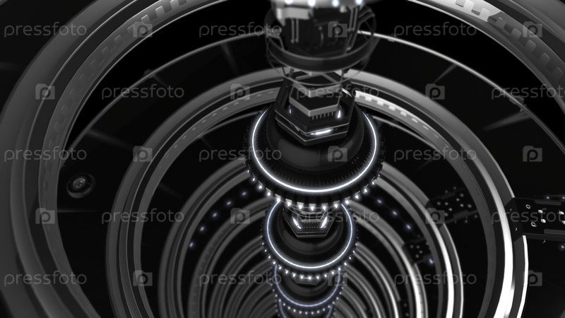 3D-анимация деталей и технологий.Анимация.Ультра будущая технология, изготовленная из блестящей стали для частей и кузова с неоновыми огнями.3D графика, проецирующая технологии будущего