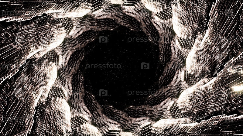 Темный туннель с дизайном программного обеспечения.Дизайн.Конструктор из программного кода в тоннеле.Темный туннель с движущимися линиями линий программного обеспечения