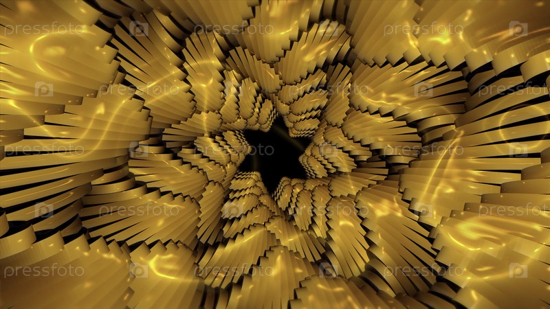 Абстрактная желтая звездная рыба вращающаяся калейдоскопический фон, бесшовная петля.Движение.Золотое крутящееся морское существо