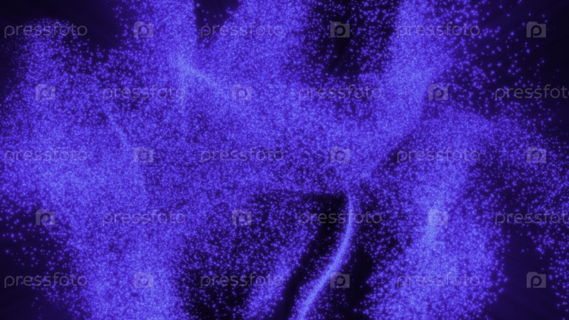 Абстрактные синие светящиеся частицы, создающие формы и движение в темном пространстве