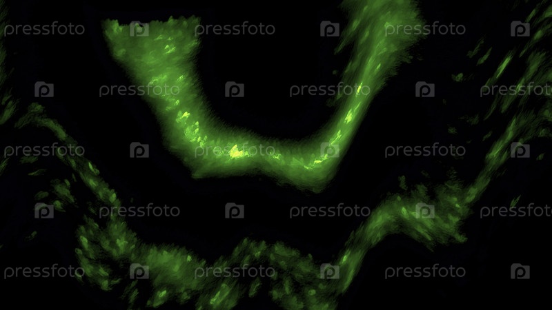 Колебающиеся арочные формы на черном фоне. Движение. Водяные светящиеся и изгибающиеся полосы
