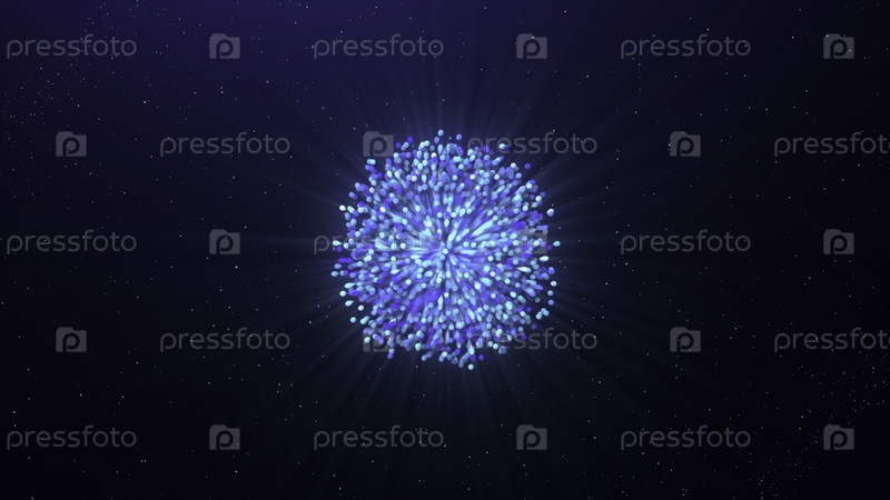 Светящийся пучок взрывной энергии. Движение. Открытие взрывного потока, образующего плотный сгусток. Энергетические частицы уплотняются в сферический сгусток