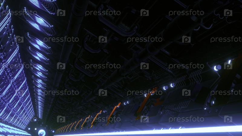 Синий фон.Движение.Яростно освещенный коридор с яркими огнями внутри, который движется и вращается вперед в абстракции.Высокое качество 4k кадры