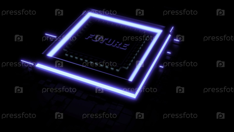 Голубой и розовый квадрат с подсветкой. Дизайн.Темный фон с квадратом, на котором написано будущее в анимации ломает пол