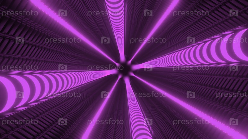 Фиолетовый и красный тоннель. Дизайн. Светлый длинный закрытый коридор в анимации, который выделяется различными оттенками