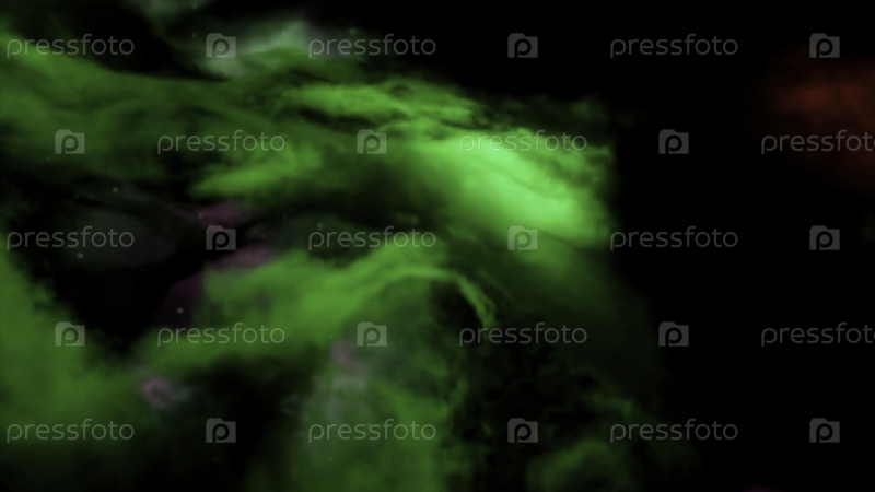Ярко летящие психоделические цвета, меняющие штормовые облака в туманности в космосе.Дизайн.Полет по абстрактному небу