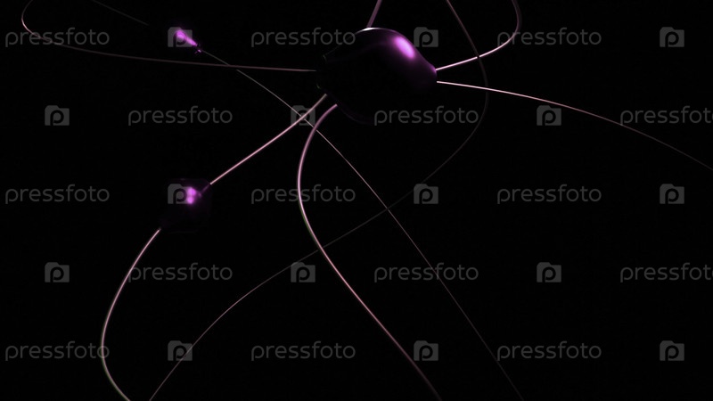 Загнутые вертикальные линии с движущимися шарами. Дизайн. Металлические спиральные линии с движущимися шарами на черном фоне. Шары нисходят вдоль изогнутых линий