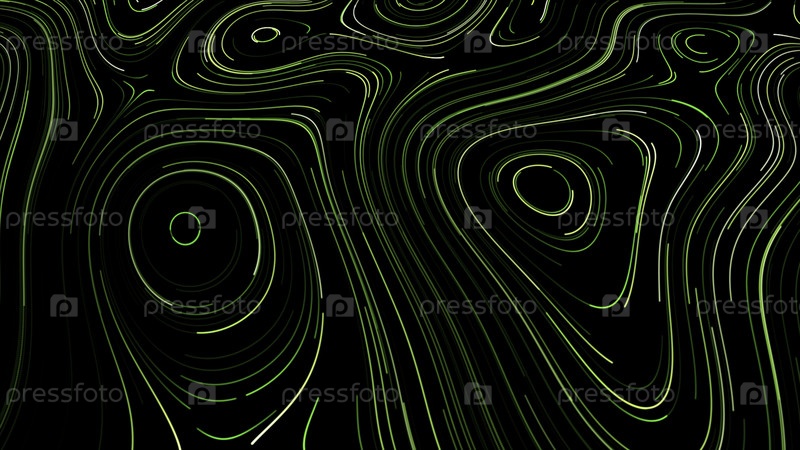 Черный фон.Движение.Синие и зеленые линии очерчивают контур и растягиваются, как лабиринт