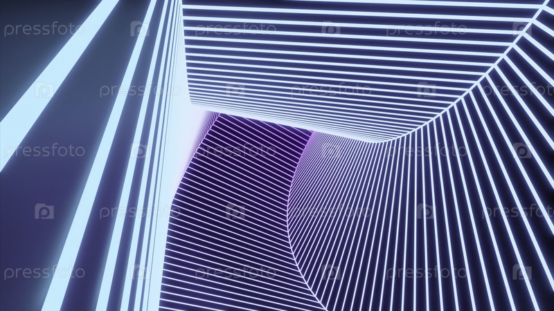 Неоновый синий яркий тоннель.Дизайн.Абстракция, которая блестит разными цветами и переворачивается на все восемьдесят градусов внутри
