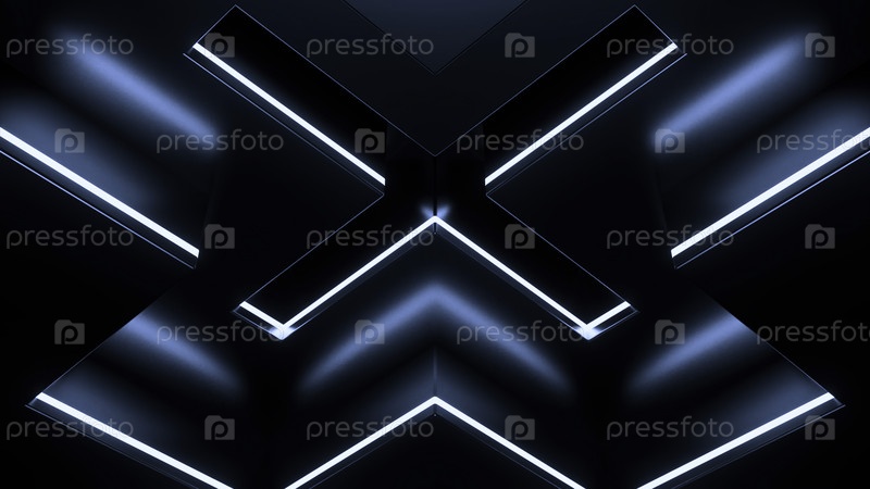 Абстрактный технологический фон с яркими неоновыми огнями. Дизайн. Яркий геометрический узор с крестовой формой, создающий эффект оптической иллюзии