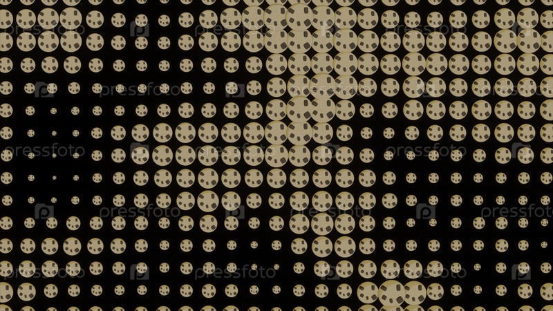Концерт крошечных круглых элементов на черном фоне. Дизайн. Панел с светодиодными лампочками со светящимися огнями