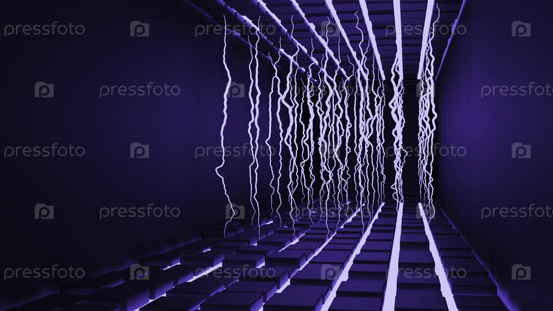 3D-коридор с электрическими волнами.Дизайн.Средства вибрирующих электрических волн в коридоре.Электрические волны для обеспечения безопасности комнаты