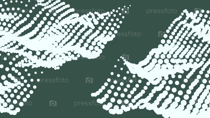 Точки передвигаются волнами на цветном фоне. Дизайн. Белые точки движутся в потоке волн на изолированном фоне. Волны точек двигаются как ткань при ветре