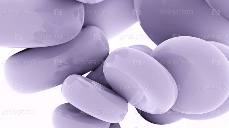 Глянцевые 3D фигуры перемещаются по спиралям. Дизайн. Круглые 3d тортильи движутся в вращающемся потоке. Гладкие круглые фигуры передвигаются по спиралкам на белом фоне