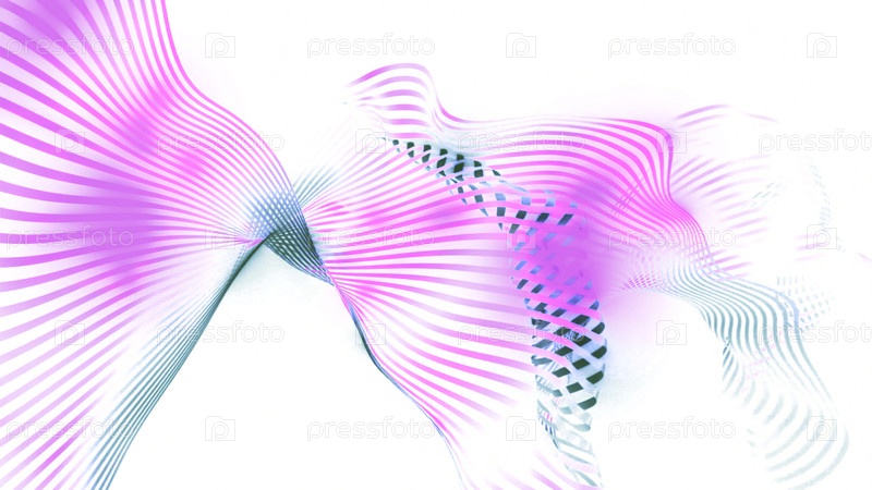 Анимация полос, движущихся волнами в стиле ткани.Движение. Движущаяся 3D-анимация с полосатой тканью на белом фоне. Красивые волнистые и красочные полосы перемещаются волнами в пространстве