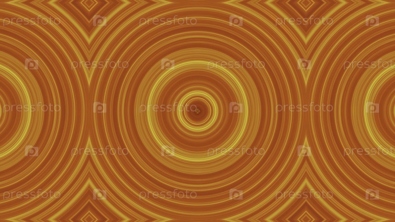 Динамические круговые формы. Абстрактные анимированные калейдоскопные круги. Уменьшение изображения кругов в желто-оранжевой цветовой гамме