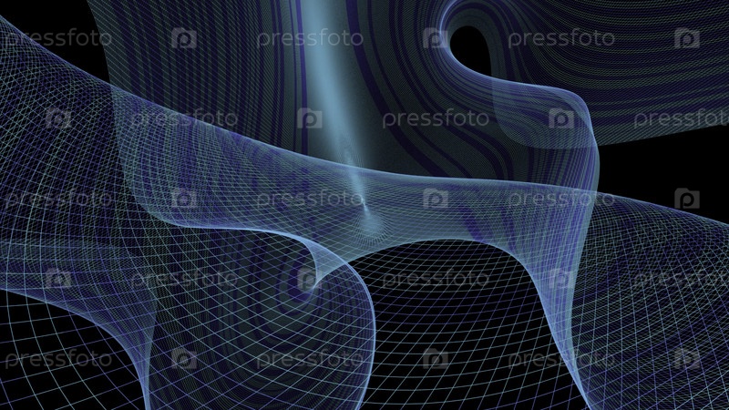 Гладкая крутящаяся изогнутая поверхность волны на черном фоне. Дизайн. Абстрактная анимированная тонкая полупрозрачная текстура