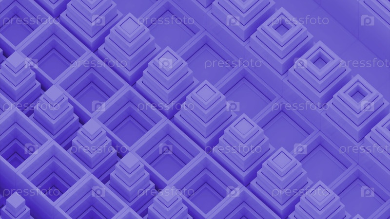 Абстрактный калейдоскопический фон с движущимися трехмерными квадратами, образующими пирамиды. Дизайн. Ряд подвижных форм вверх и вниз