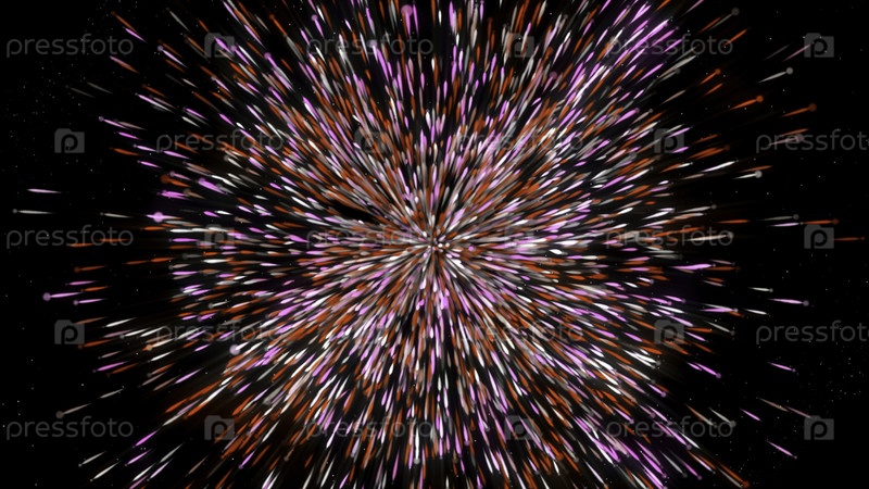 Взрыв цветных 3D-частиц в праздничном стиле. Движение. Цветовые шары с частицами, перемещающимися во время праздничного взрыва. Красочный взрыв с потоком движущихся частиц и 3D-шарами