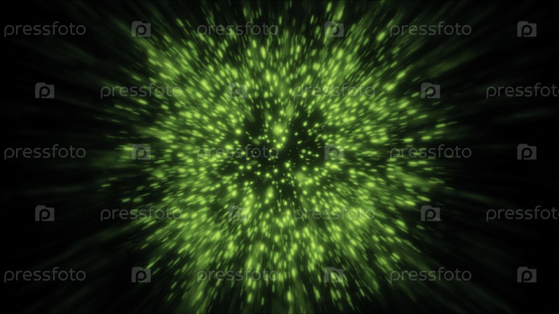 Зеленый яркий фон. Движение. Яркие фейерверки в анимации размываются в разных направлениях