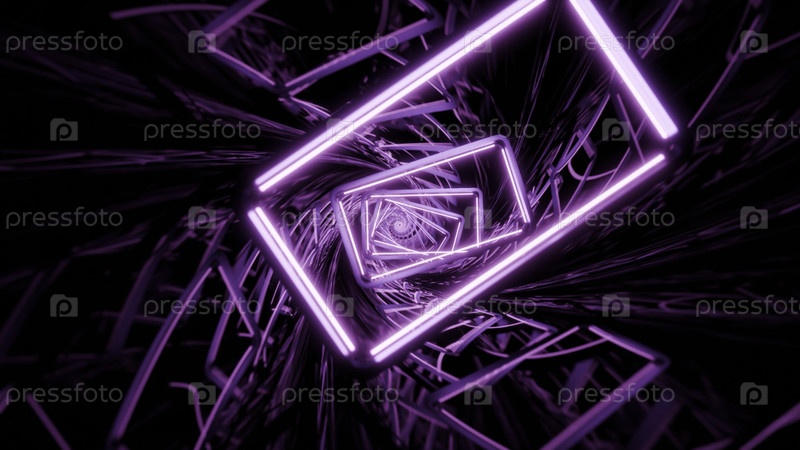 Фиолетовые неоновые огни вращаются абстрактная анимация туннеля