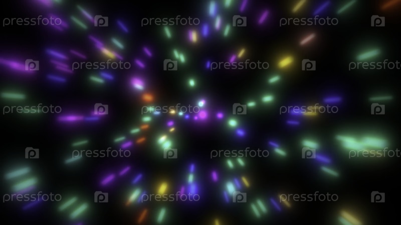 Красочные неонные частицы создают абстрактное размытие движения на темном фоне