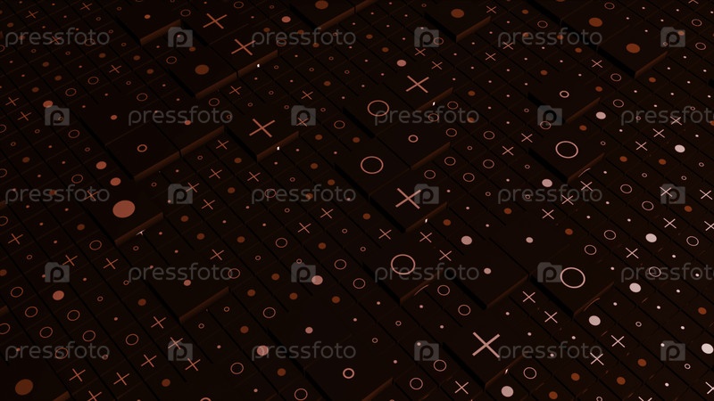Абстрактный кубический красный фон с различными 3D-формами.Движение.Геометрические абстрактные кнопки с кругами, плюсами и точками