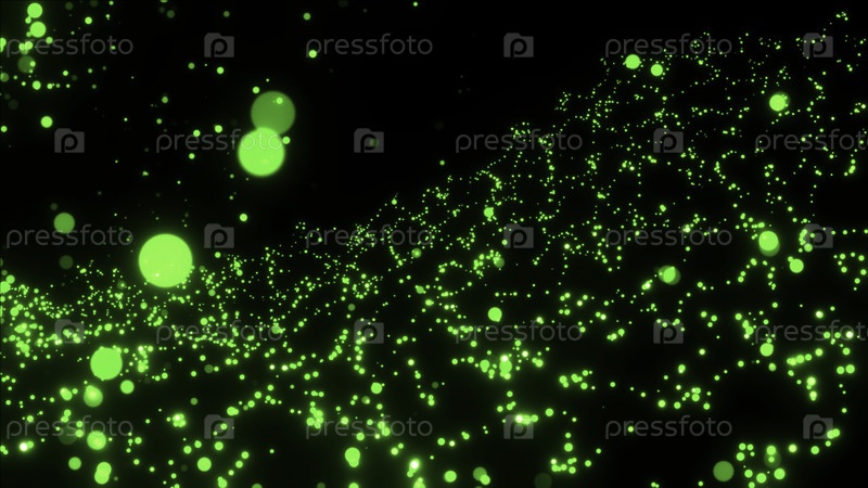 Летающие круглые частицы на черном фоне.Движение.Красивые сферы в космосе, светящиеся шары