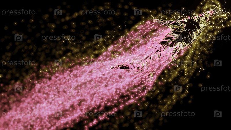 Черный фон с многоцветным блеском. Дизайн. Яркий фон с голубым и розовым блестком, который светит в абстракции