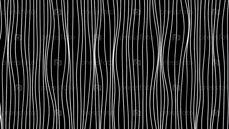 Абстрактные изогнутые белые струны, протекающие на черном фоне, бесшовная петля. Движение. Узкие изгибающиеся линии, монохром