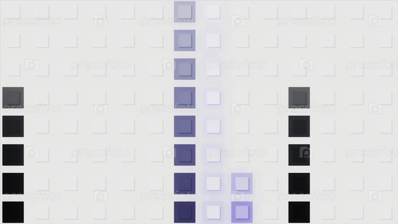 Перемещение квадратов для переходов.Движение.Пиксельные квадраты передвигаются в компьютерном стиле на белом фоне.Переходы пикселей из красочных квадратов