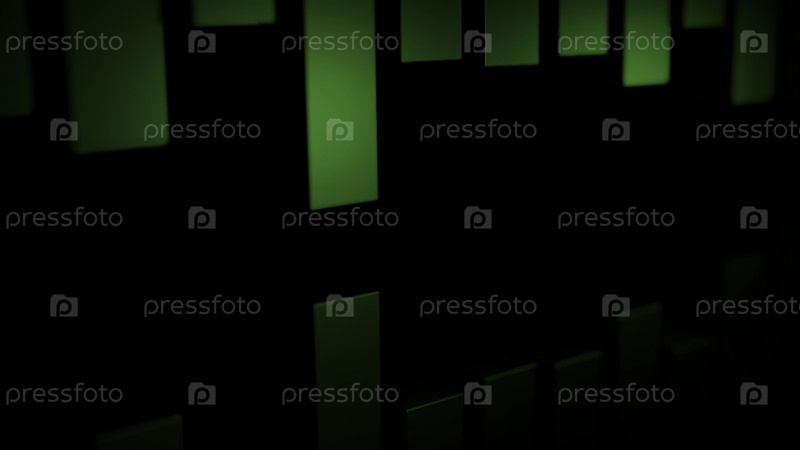 Синие и зеленые полосы. Дизайн. Черный фон с полосами, которые падают и поднимаются в разных направлениях в 3D-формате