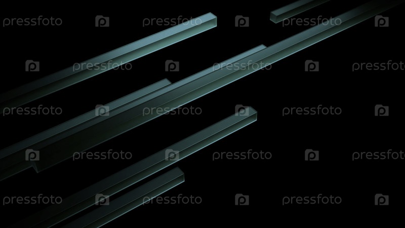 Футуристические 3D светящиеся металлические синие полоски, летящие изолированно на черном фоне. Дизайн. Длинные узкие движущиеся полосы