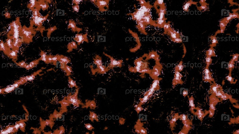 3D жидкость с морщинами и светящимися линиями. Дизайн. Черная жидкость движется со светлыми морщинками. Цветные неоновые морщины на поверхности черной 3d-жидкости
