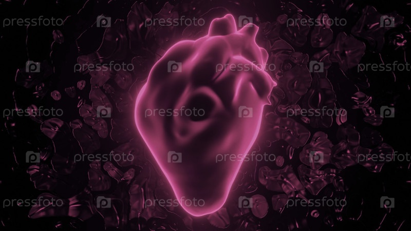 Анимация с бьющимся 3D-сердцем. Дизайн. Красивая 3D-анимация со светящимся цветным сердцем. Неоновое 3d сердце бьется и бьётся на черном фоне