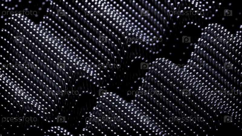 Абстрактные волнистые технологические облака частиц. Дизайн. Падающие крошечные сферы на черном фоне