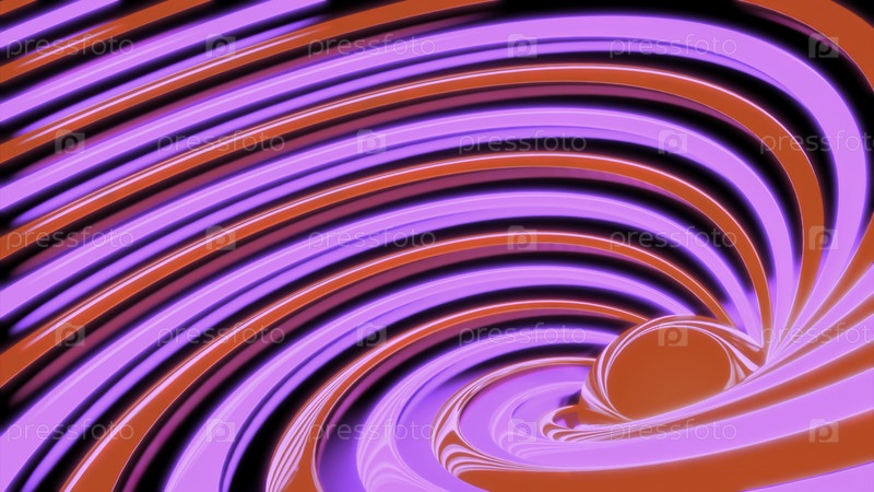 Абстрактный фон с анимированным гипнотическим ураганом из розовых и красных полосок. Дизайн. Поворачивающийся изогнутый контрастные линии